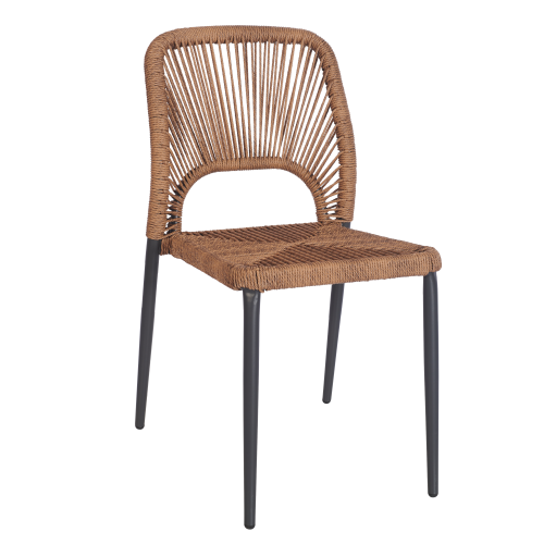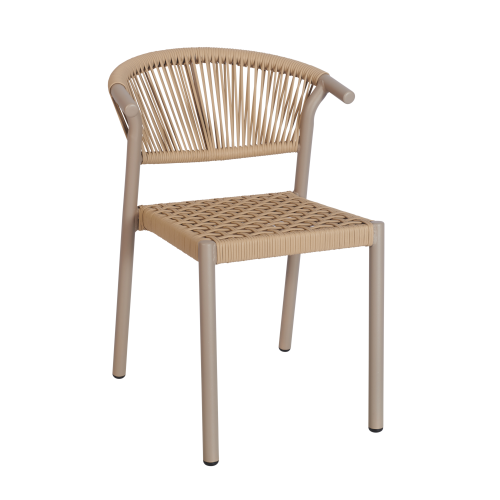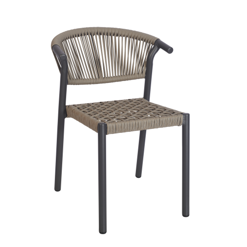 Bilbao Sidechair, suitable for outdoor use, using an aluminum frame with a PE rope seat and back, can be stacked four high