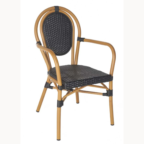 Marseille Armchair, suitable for outdoor use, using an aluminum frame with a Flat PR rattan weave seat and back, can be stacked three high