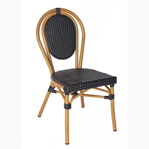 Marseille Sidechair, suitable for outdoor use, using an aluminum frame with a Flat PR rattan weave seat and back, can be stacked three high